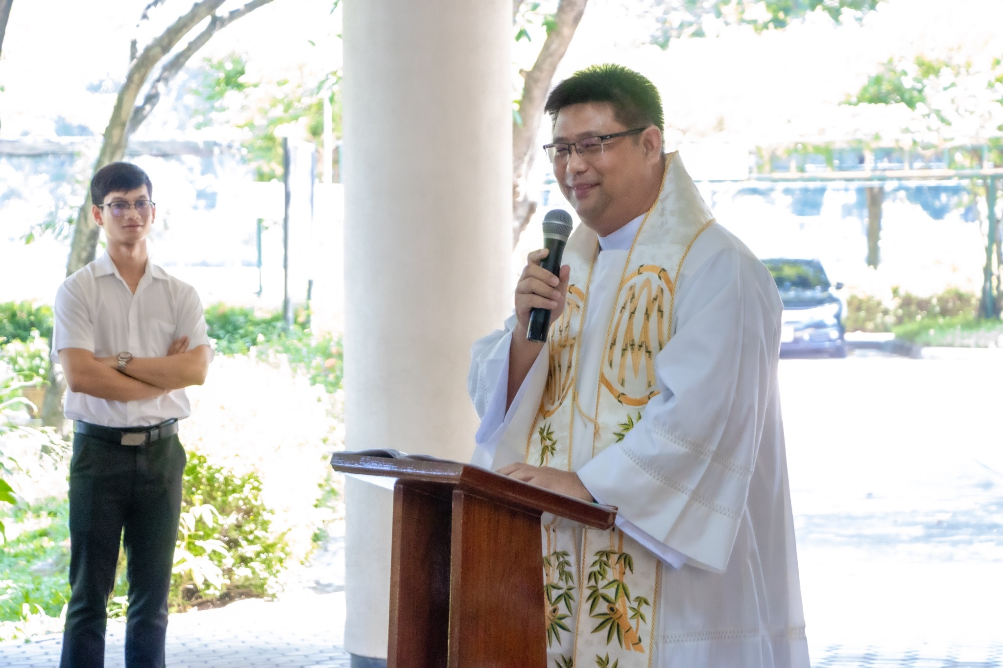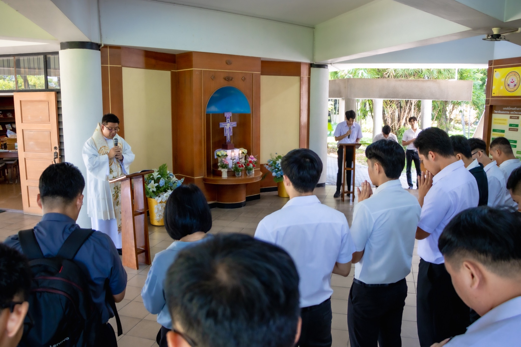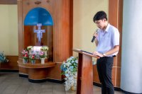 On November 1, 2024, 10.20 – 10.40 am. Saengtham College, with the organized by Student Union celebrated “The Liturgy of the Word on the Solemnity of All Saints.” This event was presided over by Rev. Vatcharapol Koochad, along with the instructor of the college, catechists, and the students.