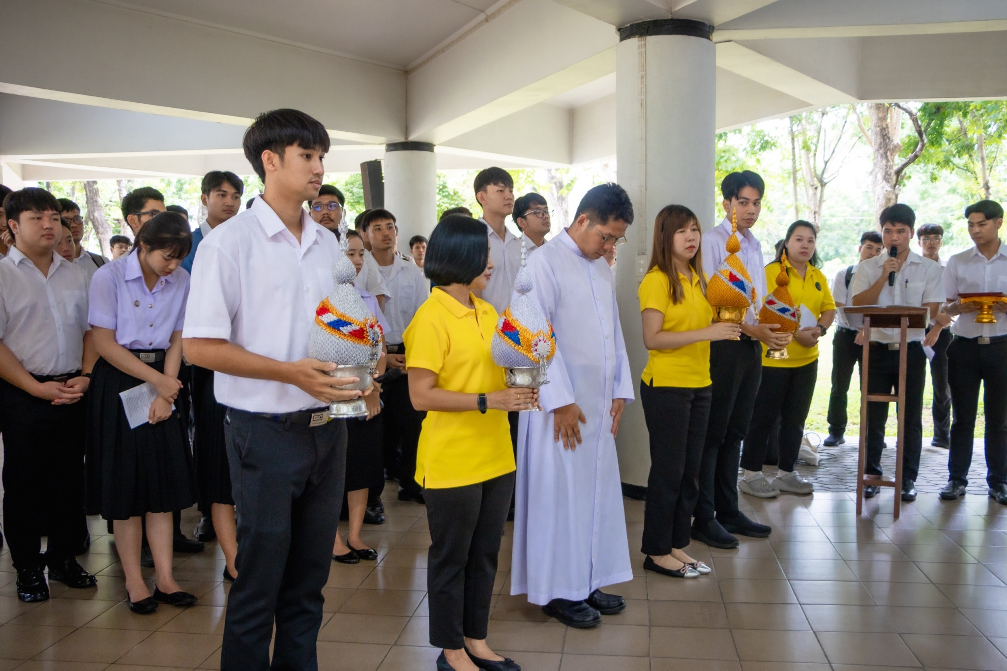 โดย บาทหลวง ดร.วีรศักดิ์ ยงศรีปณิธาน รองอธิการบดีฝ่ายกิจการนักศึกษา เป็นประธาน พร้อมคณะผู้บริหาร คณาจารย์ เจ้าหน้าที่ และนักศึกษา ณ ใต้อาคารเรียนวิทยาลัยแสงธรรม