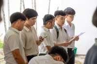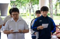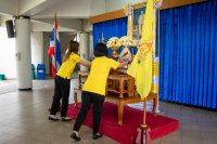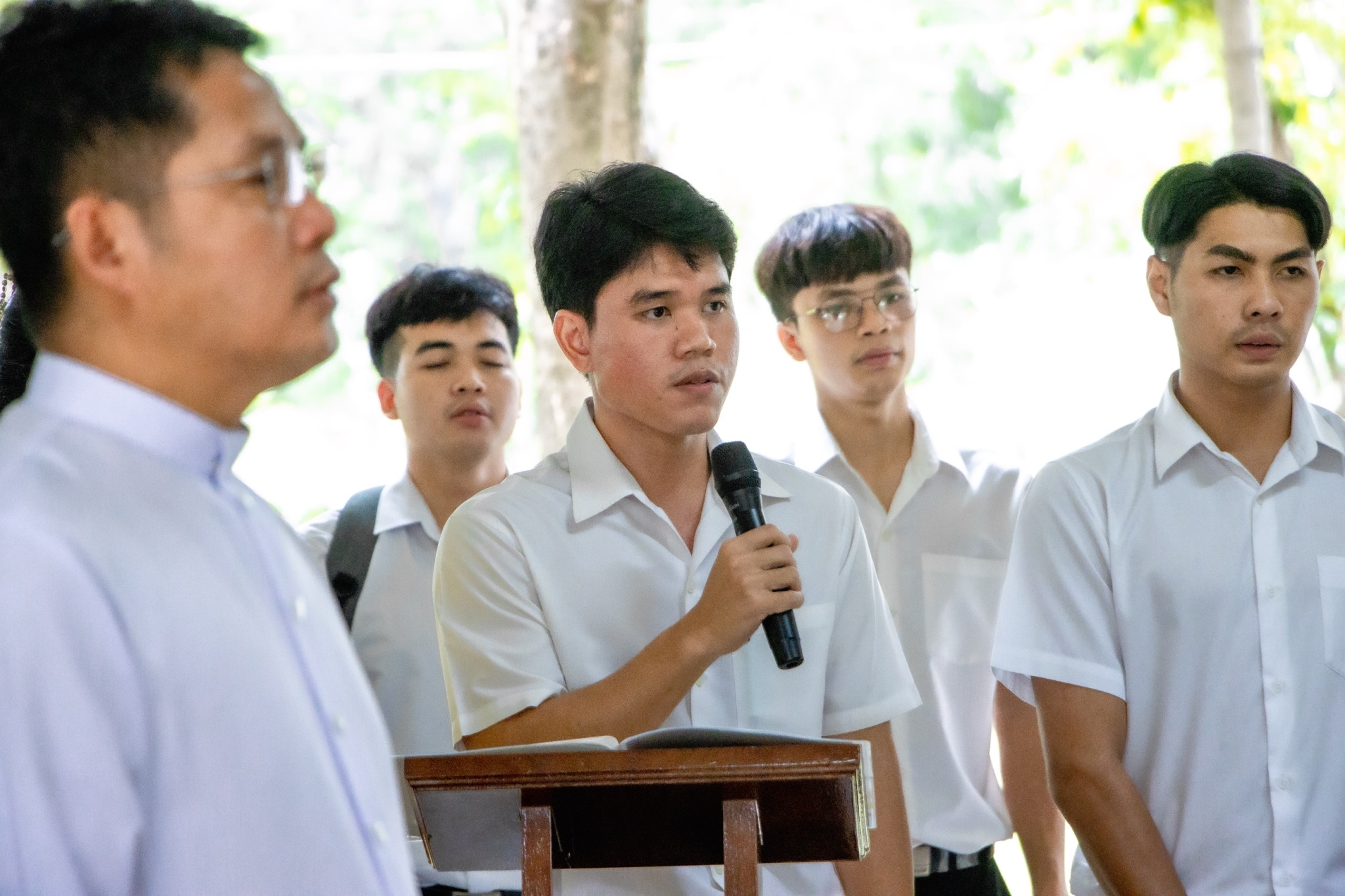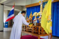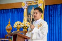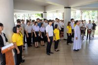 On Friday, July 26, 2024, 10:20 - 10:40 a.m. Saengtham College, with the organized by Student Union celebrated “The Liturgy of the Word on the occasion of His Majesty King Vajiralongkorn's 72nd birthday.” This event was led by Reverend Dr. Werasak Yongsripanitthan, Vice President for Student Affairs, along with the instructor of the college, staff, catechists, and the students.