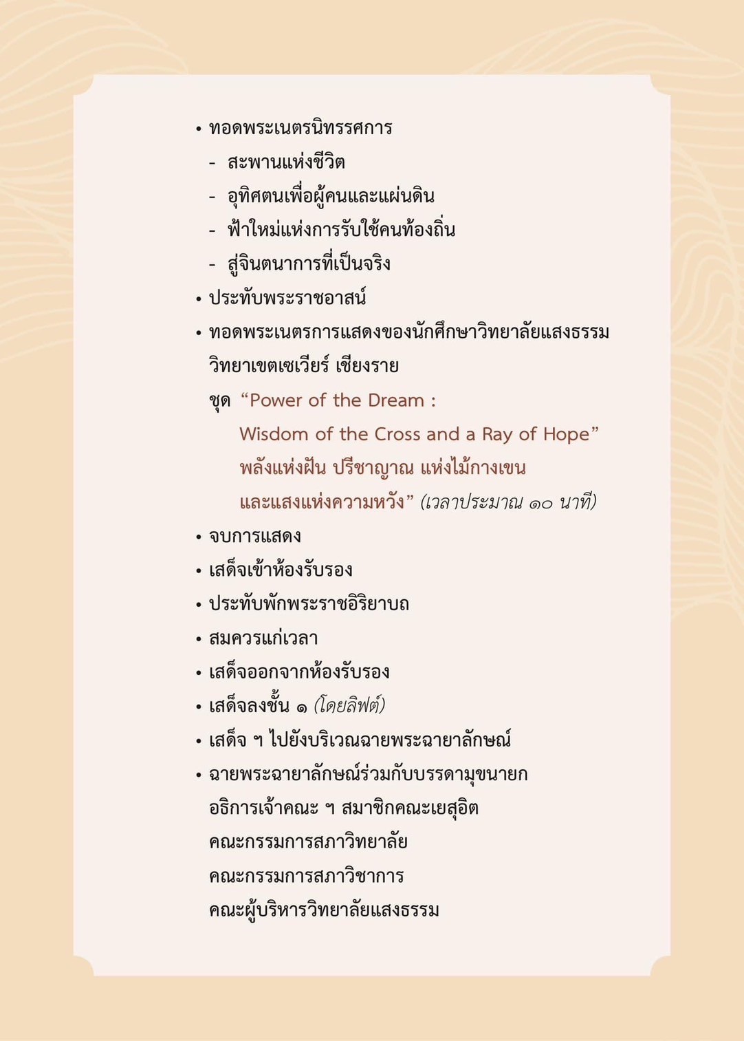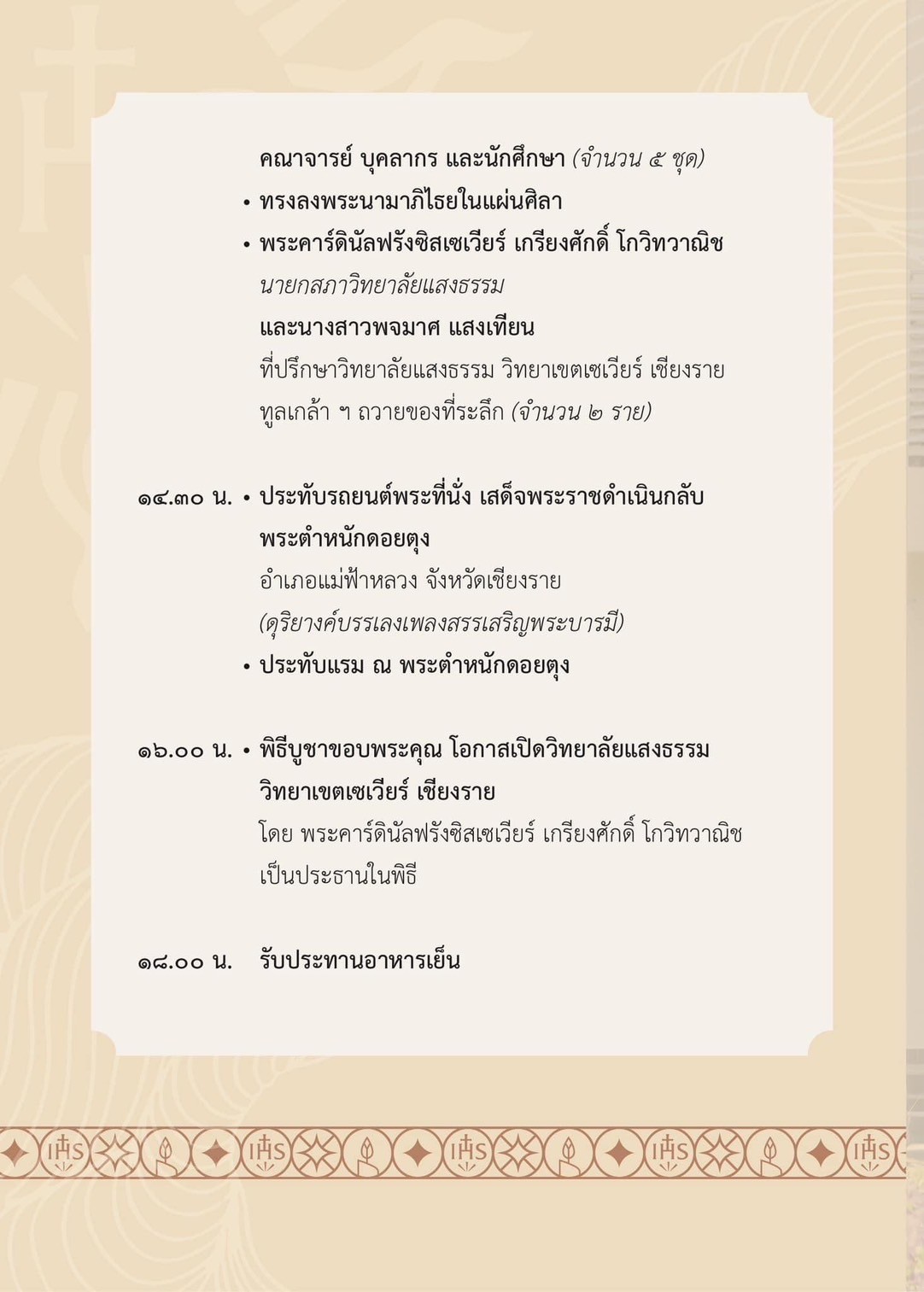 อีกเหตุการณ์หนึ่งเพื่อบันทึกไว้ในประวัติศาสตร์พระศาสนจักรไทย โดยงานจะเริ่มขึ้นในช่วงบ่ายของวันอังคารที่ 27 กุมภาพันธ์ 2024 และมีพิธีบูชาขอบพระคุณโมทนาคุณพระเจ้า และการเสกอาคาร เวลา 16.00 น.