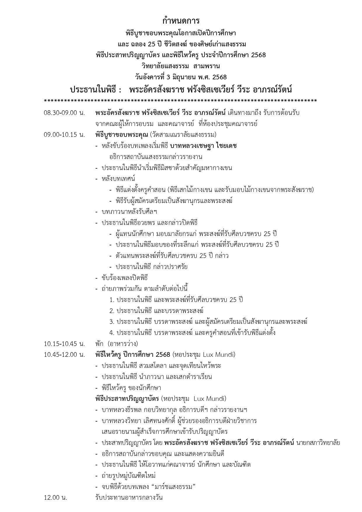 ขอเชิญร่วมพิธีบูชาขอบพระคุณโอกาสเปิดปีการศึกษา ฉลอง 25 ปี ชีวิตสงฆ์ของศิษย์เก่าแสงธรรม พิธีประสาทปริญญาบัตรประจำปีการศึกษา 2566 และพิธีไหว้ครู