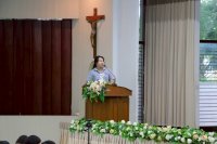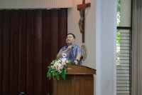 - บาทหลวง ธีรพล กอบวิทยากุล อธิการบดี นำภาวนา กล่าวต้อนรับ ให้โอวาท และบรรยายเรื่อง "ปีศักดิ์สิทธิ์ : บรรดาผู้จาริกแห่งความหวัง"