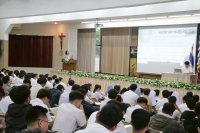 - นางสาวปนัดดา ชัยพระคุณ และนางสาวแสงระวี กิจเจริญ เจ้าหน้าที่แผนกกิจการนักศึกษา นำเสนอระเบียบวินัย การเข้าร่วมกิจกรรมและการประชาสัมพันธ์ข่าวสารในเรื่องต่างๆ