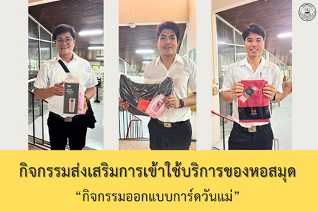 วันจันทร์ที่ 19 สิงหาคม 2567 แผนกหอสมุด ฝ่ายวิชาการ ได้จัดกิจกรรมประกวดออกแบบการ์ด เนื่องในวันแม่แห่งชาติ ประจำปี 2567 การมอบรางวัลสำหรับผู้ร่วมกิจกรรมของหอสมุดเป็นการกระตุ้น ปลุกจิตสำนึกการมีส่วนร่วม