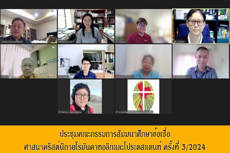 เมื่อวันศุกร์ที่ 16  สิงหาคม 2024 ได้มีการประชุมคณะกรรมการสัมมนาศึกษาข้อเชื่อศาสนาคริสต์นิกายโรมันคาทอลิกและโปรเตสแตนท์ ครั้งที่ 3/2024 ในรูปแบบออนไลน์ผ่านโปรแกรม Zoom มีผู้เข้าร่วมจำนวน 9 คน
